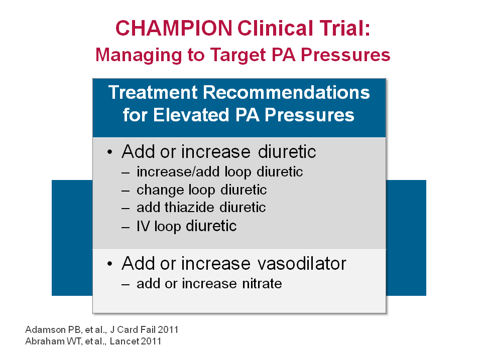 Adamson PB, Abraham WT, Aaron M, et al. CHAMPION trial rationale and design: The long-term safety and clinical efficacy of a wireless pulmonary artery pressure monitoring system. J Cardiac Fail. 2011;17:3-10.