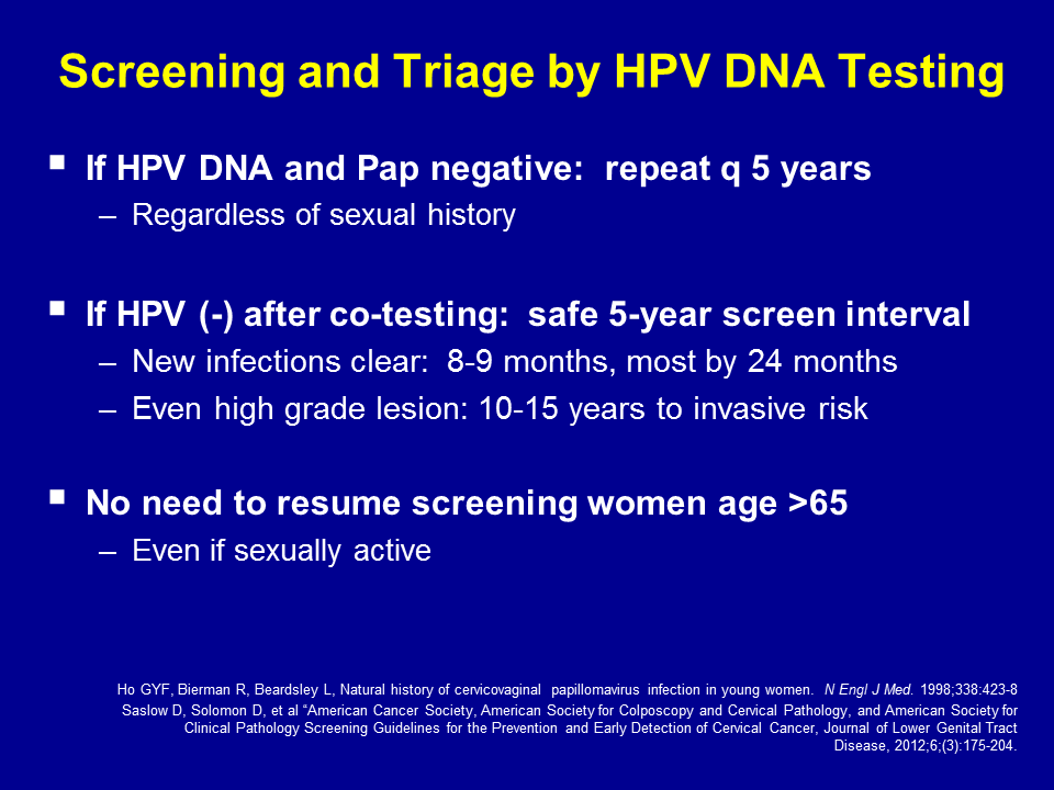 [94] Saslow D, Solomon D, et al “American Cancer Society, American Society for Colposcopy and Cervical Pathology, and American Society for Clinical Pathology Screening Guidelines for the Prevention and Early Detection of Cervical Cancer, Journal of Lower Genital Tract Disease, 2012;6;(3):175-204.