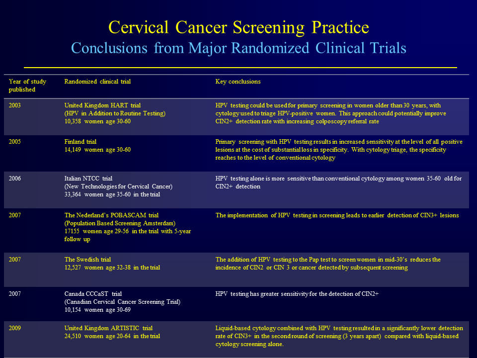 This slide summarizes the key conclusions from 7 major randomized clinical trials. In the interest of time, I will go into details for 2 of those studies: