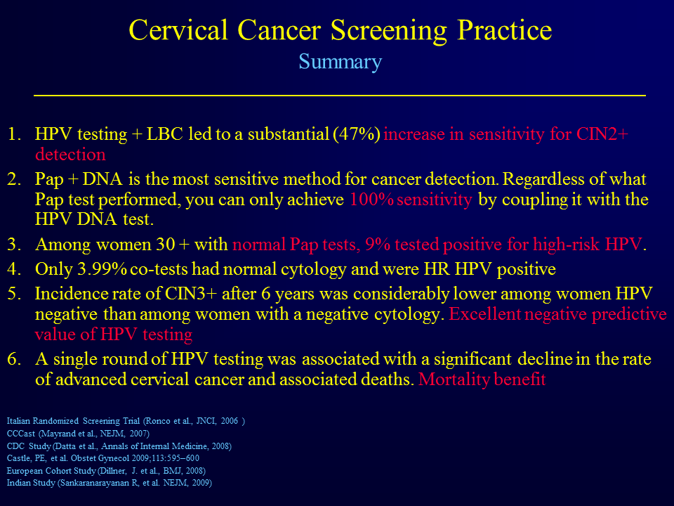 The conclusions from all these studies tell us that HPV testing combined with cytology (co-testing) increases