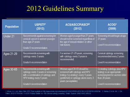 [71] Moyer, VA. Screening for cervical cancer: U.S. Preventive Services Task Force recommendation state. Annal of Internal Medicine 2012.