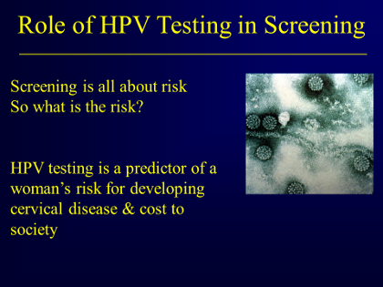 When we talk about screening, it’s all about the risk. So what about the risk? Recall that the HPV test is a predictor