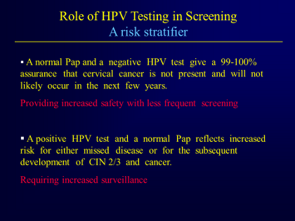 It is really a risk stratifier. So when we get a normal Pap and a negative HPV test, what does that mean?