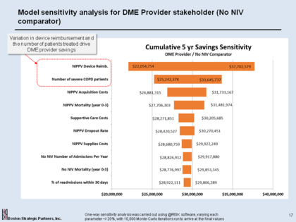 Model sensitivity analysis for DME Provider stakeholder (No NIV comparator)