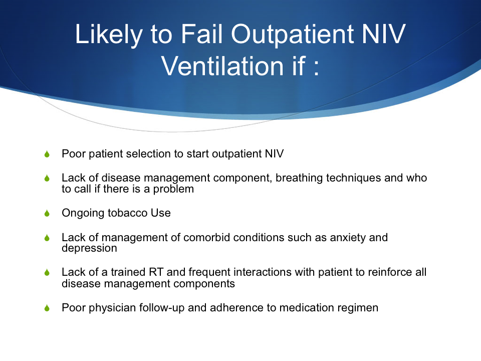 Likely to Fail Outpatient NIV Ventilation if: