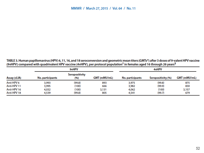 HPV seroconversion and GMTs Compared with 4vHPV, Per Protocol Population in Females Aged 16 through 26 Years