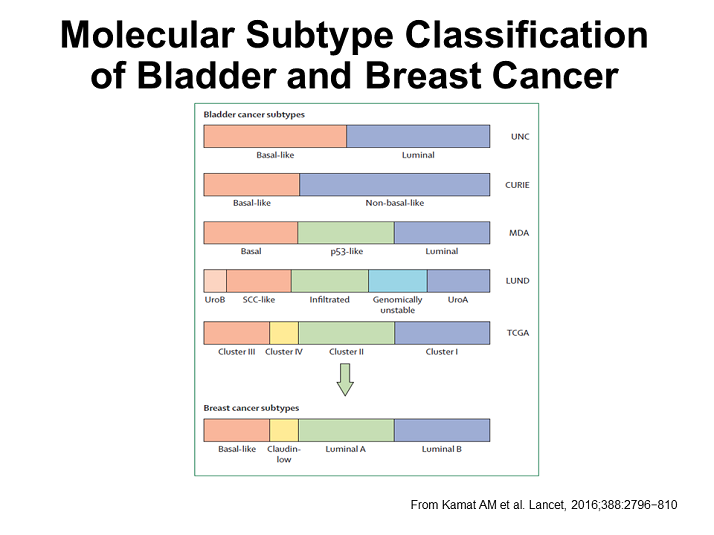 Choi W, Porten S, Kim S, et al. Identification of distinct basal and luminal subtypes of muscle-invasive bladder cancer with different sensitivities to frontline chemotherapy. Cancer Cell. 2014;25:152–65 http://dx.doi.org/10.1016/j.ccr.2014.01.009
