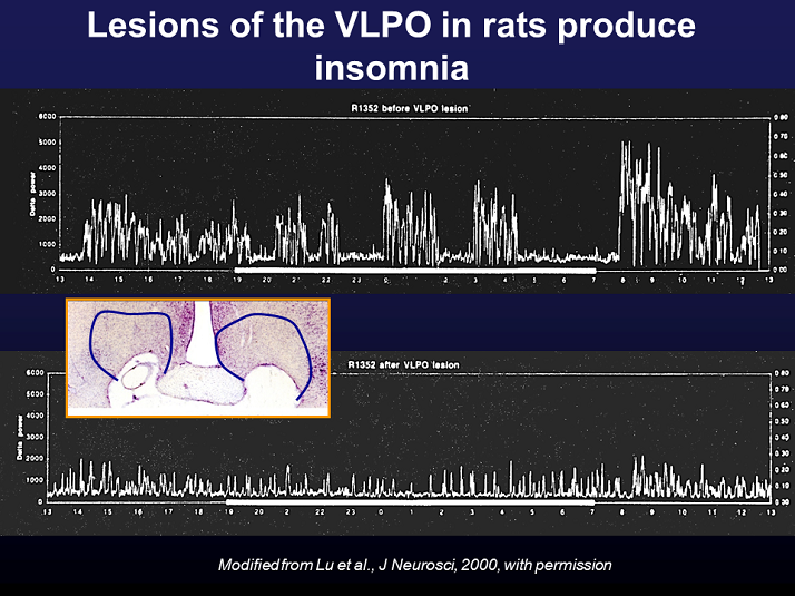 Lesions of the VLPO in rats produce insomnia