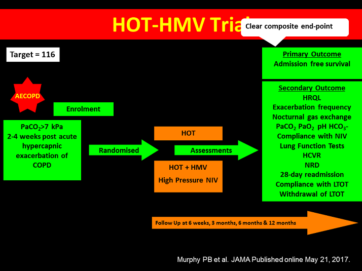 Murphy PB, Rehal S, Arbane G, et al. Effect of home noninvasive ventilation with oxygen therapy vs oxygen therapy alone on hospital readmission or death after an acute COPD exacerbation: a randomized clinical trial. JAMA. Published online May 21, 2017. doi:10.1001/jama.2017.4451.