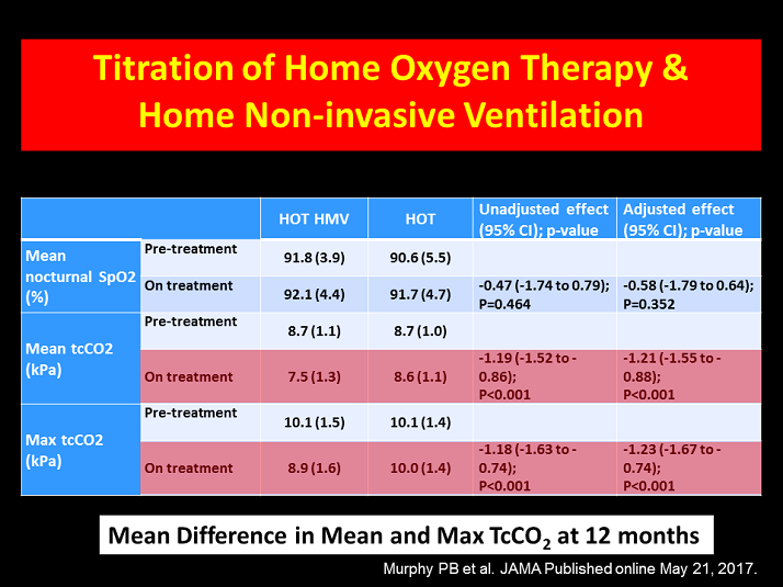 Murphy PB, Rehal S, Arbane G, et al. Effect of home noninvasive ventilation with oxygen therapy vs oxygen therapy alone on hospital readmission or death after an acute COPD exacerbation: a randomized clinical trial. JAMA. Published online May 21, 2017. doi:10.1001/jama.2017.4451.