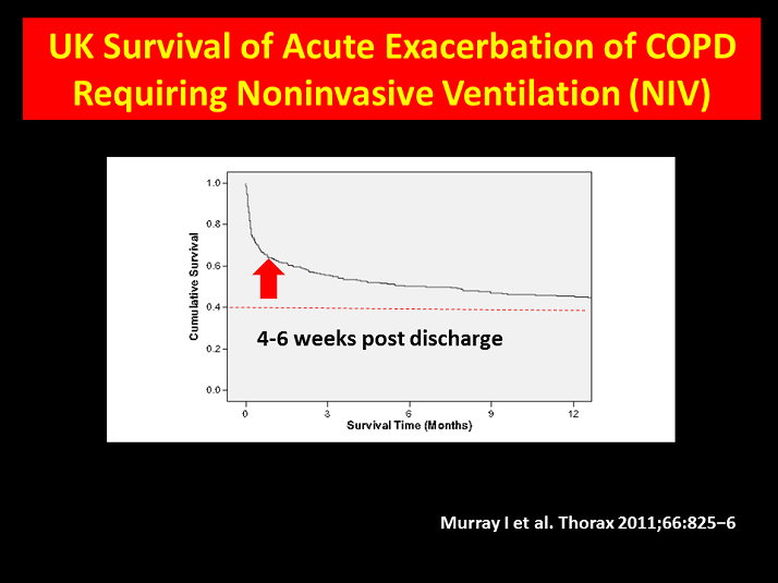Murray I, Paterson E, Thain G, Currie GP. Outcomes following non-invasive ventilation for hypercapnic exacerbations of chronic obstructive pulmonary disease. Thorax. 2011;66:825−6. doi: 10.1136/thx.2010.152264.