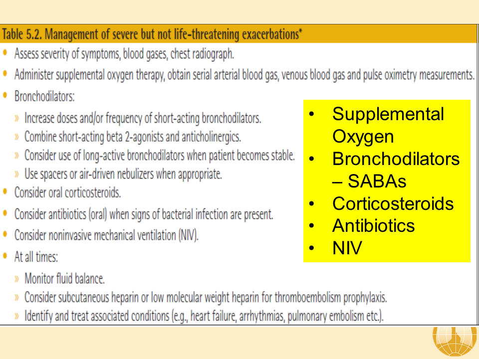 Table 5.2. Management of severe but not life-threatening exacerbations