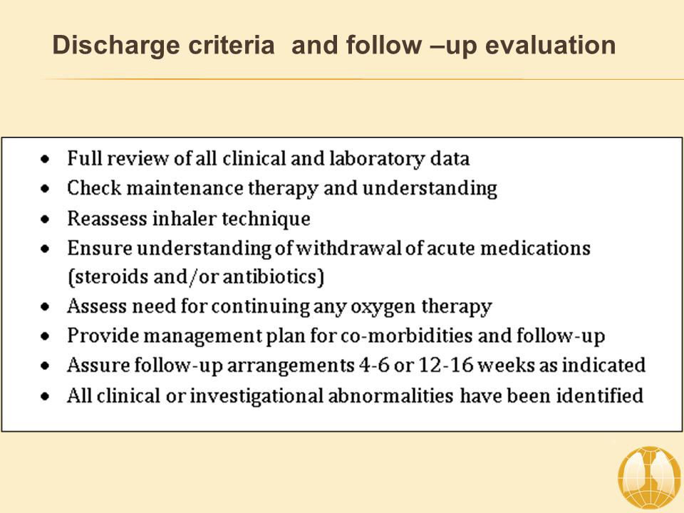 Discharge criteria and follow-up evaluation
