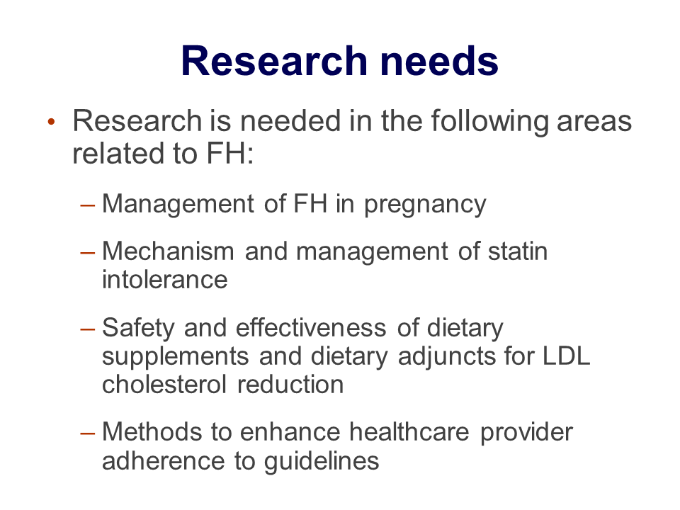 - management of FH in pregnancy – this is particularly difficult since most of the