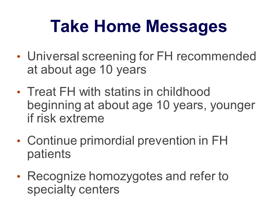 To summarize, there are 4 take home messages concerning recognizing and managing FH