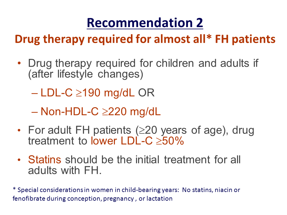 - almost all FH patients will require a regimen of adequate therapy with a