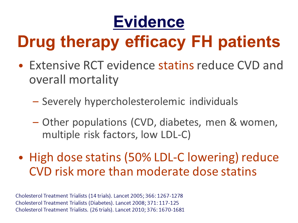 Against this very robust background demonstrating the benefits of treating patients to achieve very low serum LDL cholesterol levels it was noted that treatment with high-dose, high-potency atorvastatin reduced serum LDL cholesterol by about 50%, and therefore that is the basis for the recommendation that the goal in FH patients should be to aim for an LDL reduction of at least a 50%.