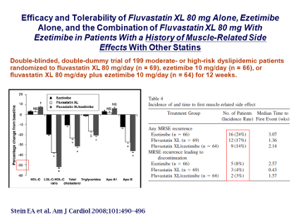 80 mg Alone, Ezetimibe Alone, and the Combination of Fluvastatin XL 80 mg With