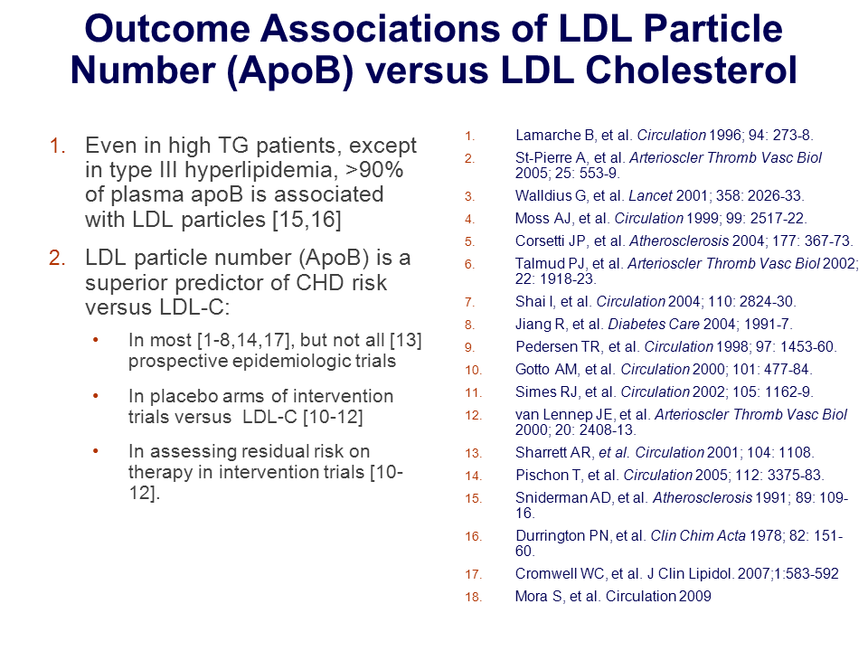 If we explore the different associations between lipoprotein particle concentrations and cIMT, we can see that there is an inverse relationship between serum HDL cholesterol level and cIMT. But when HDL cholesterol is adjusted for other major risk factors and then adjusted for LDL particle concentration, the relationship changes. In other words, serum HDL cholesterol becomes more important as a predictor of cIMT below a certain threshold, ie, <41 mg/dL.