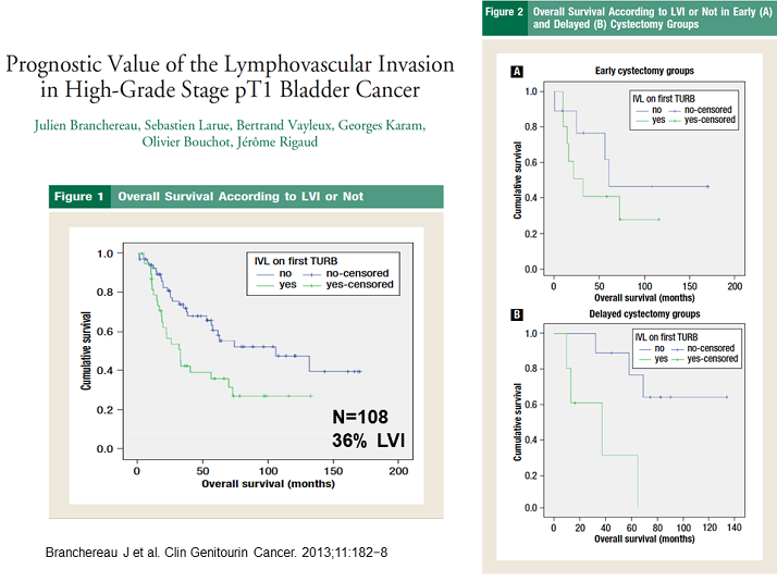 Branchereau J, Larue S, Vayleux B, et al. Prognostic value of the lymphovascular invasion in high-grade stage pT1 bladder cancer. Clin Genitourin Cancer. 2013;11:182−8 https://doi.org/10.1016/j.clgc.2012.10.002\