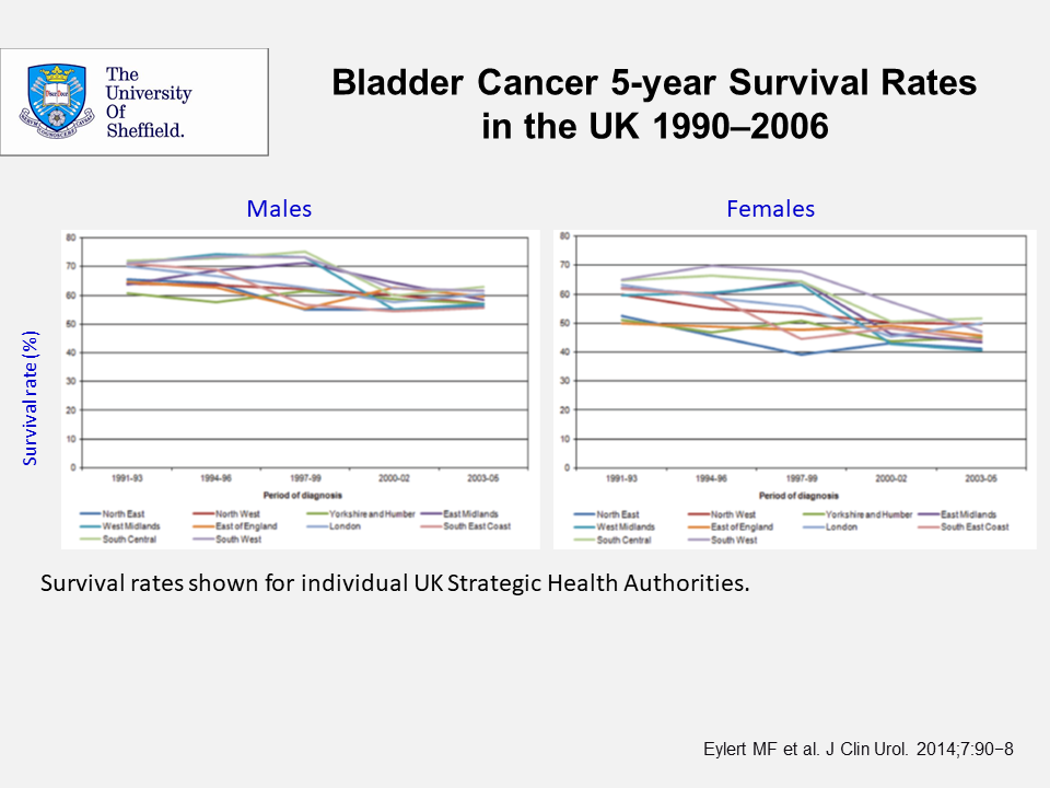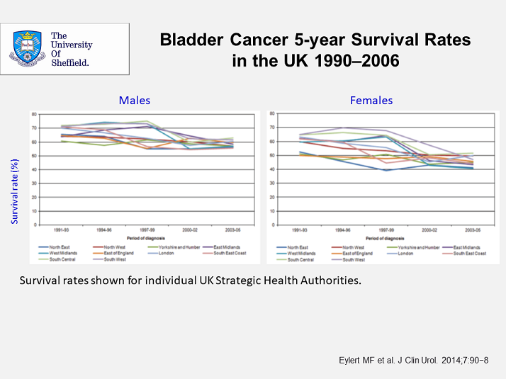 Eylert MF, Hounsome LS, Persad RA, et al. Falling bladder cancer incidence from 1990 to 2009 is not producing universal mortality. J Clin Urol. 2014;7:90–8 https://doi.org/10.1177/2051415813492724