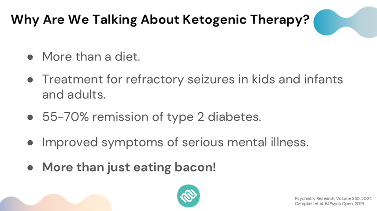 We're not just talking about eating bacon to lose a few pounds, which is how a ketogenic diet is often portrayed. Instead, we're talking about ketogenic therapy as a powerful and effective medical intervention.