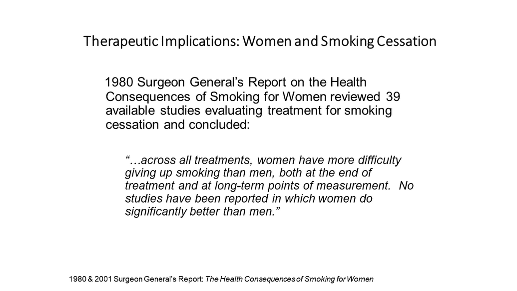 Therapeutic Implications: Women and Smoking Cessation